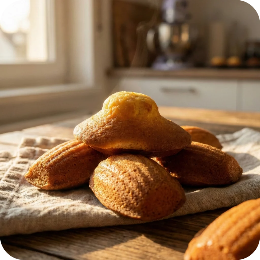 Qu’elles soient nature, parfumées aux zestes d’orange ou parsemées de pépites de chocolat, nos madeleines sont pensées pour offrir un instant de pur plaisir.